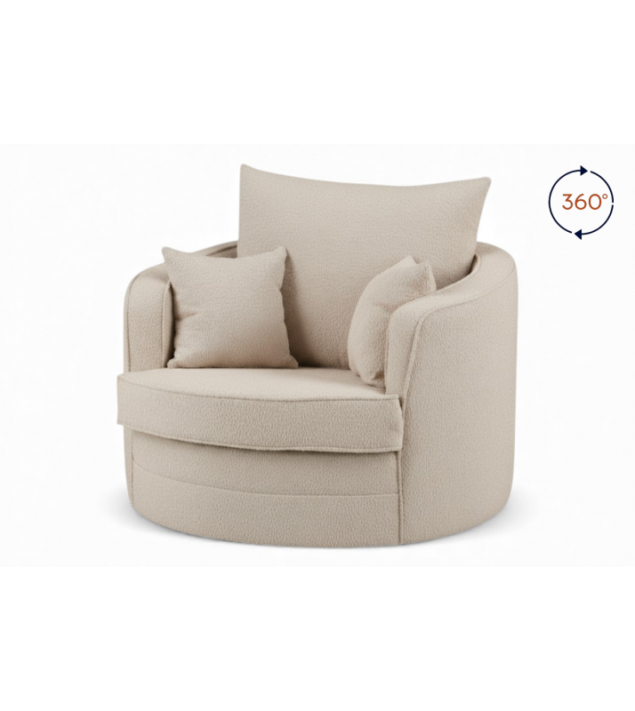 Fotel obrotowy Swivel beż baranek boucle – fotel tapicerowany obrotowy